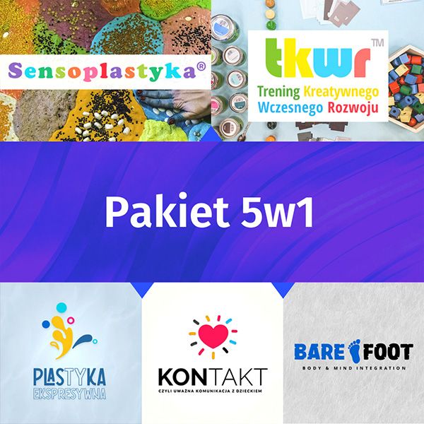 Pakiet 5w1 zawiera szkolenia: Sensoplastyka®, TKWR™, Plastyka Ekspresywna®, BareFoot™ i "KONTAKT"