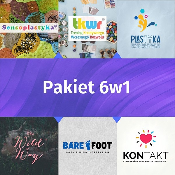 Pakiet 6w1 zawiera szkolenia: Sensoplastyka®, TKWR™, Plastyka Ekspresywna®, BareFoot™, "KONTAKT" i The Wild Way™